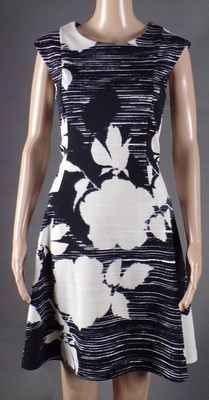 Apt. 9 Womens Sleeveless Dress Black White Fitted Waist Flare Bottom Size Large